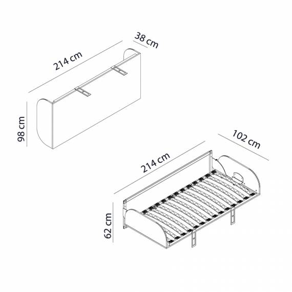 Diseño simple con solo unos pocos componentes, una cama de invitados perfecta, una cama adicional para niños o una cama modular de pared que ahorra espacio y espacio en su oficina.